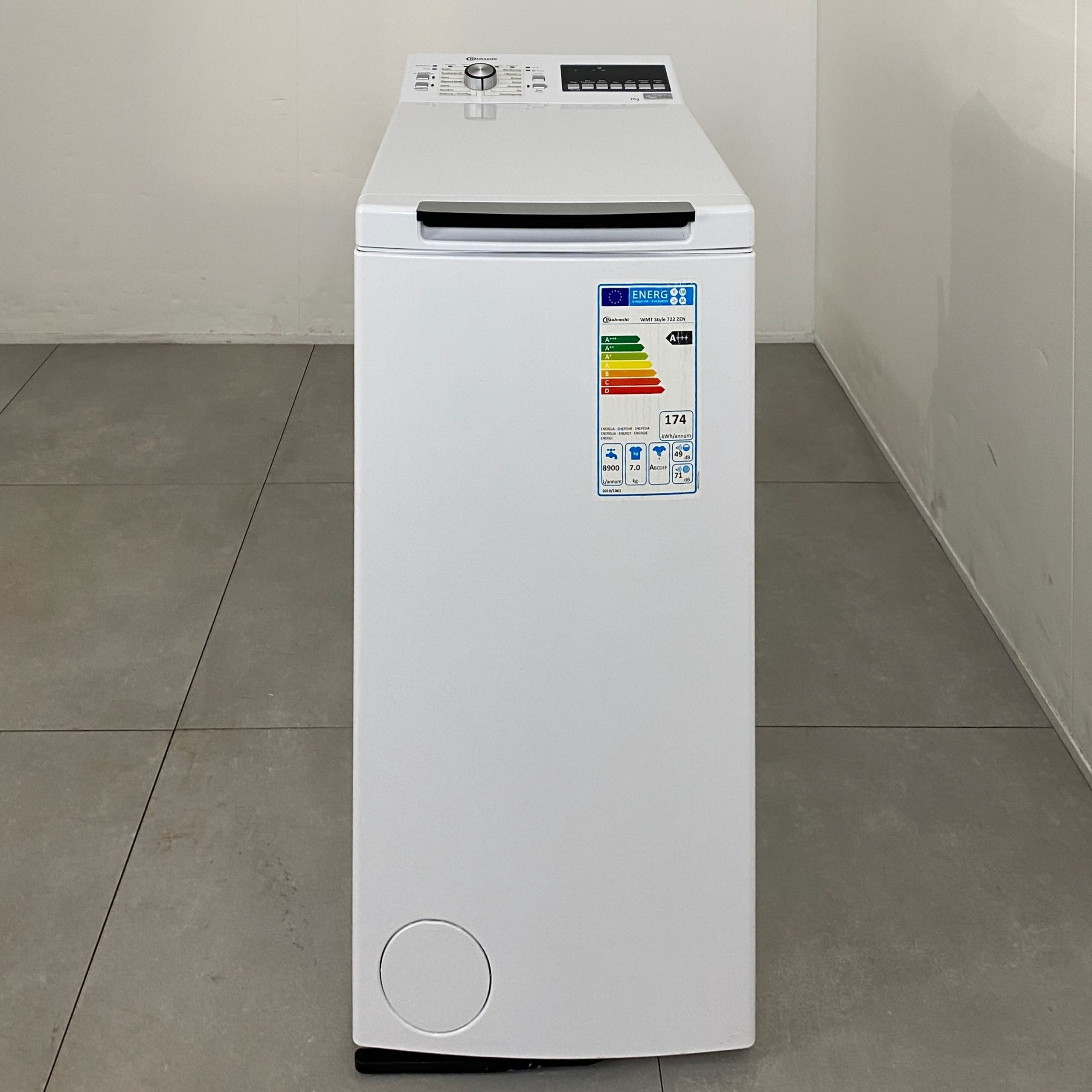 Med en bredd på 40 cm får Bauknecht WMT Style 722 ZEN N enkelt plats i din lilla lägenhet. Du kan tvätta små tvättmängder i trumman med en kapacitet på 7 kg. Överfyllnadsskyddet, slangskyddet och golvsensorn förhindrar att dina fötter blir blöta. Förutom fullt skydd mot vatten har Bauknechts toppmatade tvättmaskin även en SoftOpening-lucka. Så fort du trycker mjukt på luckan öppnas den automatiskt. Du kan ta bort upp till 100 fläckar med anti-fläckprogrammet vid skonsamma 20°C. Dina textilier tvättas skonsamt vid endast 20°C. Eftersom Bauknechts tvättmaskin centrifugerar tyst med 72 dB kan du även tvätta medan du arbetar hemifrån. ZEN-tekniken i den borstlösa Direct Drive-motorn minskar vibrationerna.