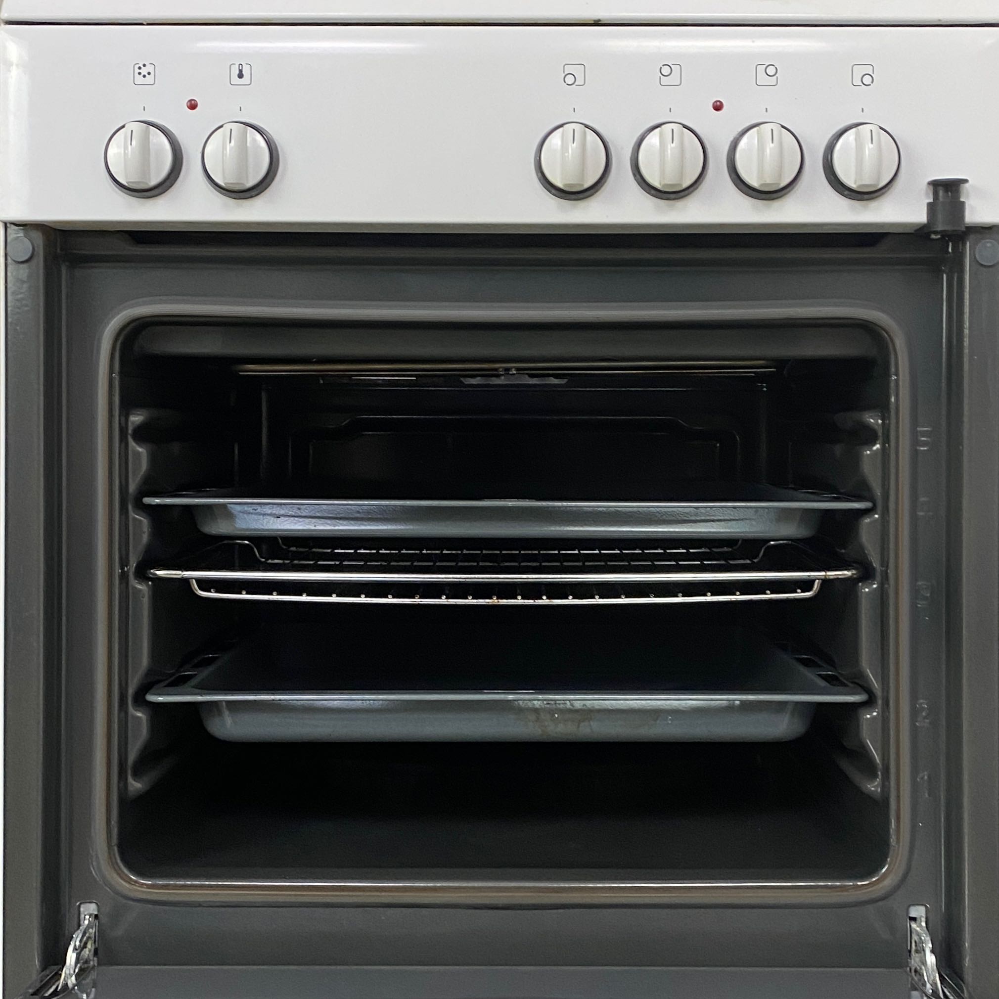 Den elektriska ugnen har en generös volym på 66 liter, vilket gör det enkelt att tillaga större rätter eller flera plåtar samtidigt. Med inbyggd grillfunktion får du extra flexibilitet för gratinering och krispiga resultat. Spisen är utrustad med klassiska vred som ger enkel och intuitiv kontroll över både häll och ugn.