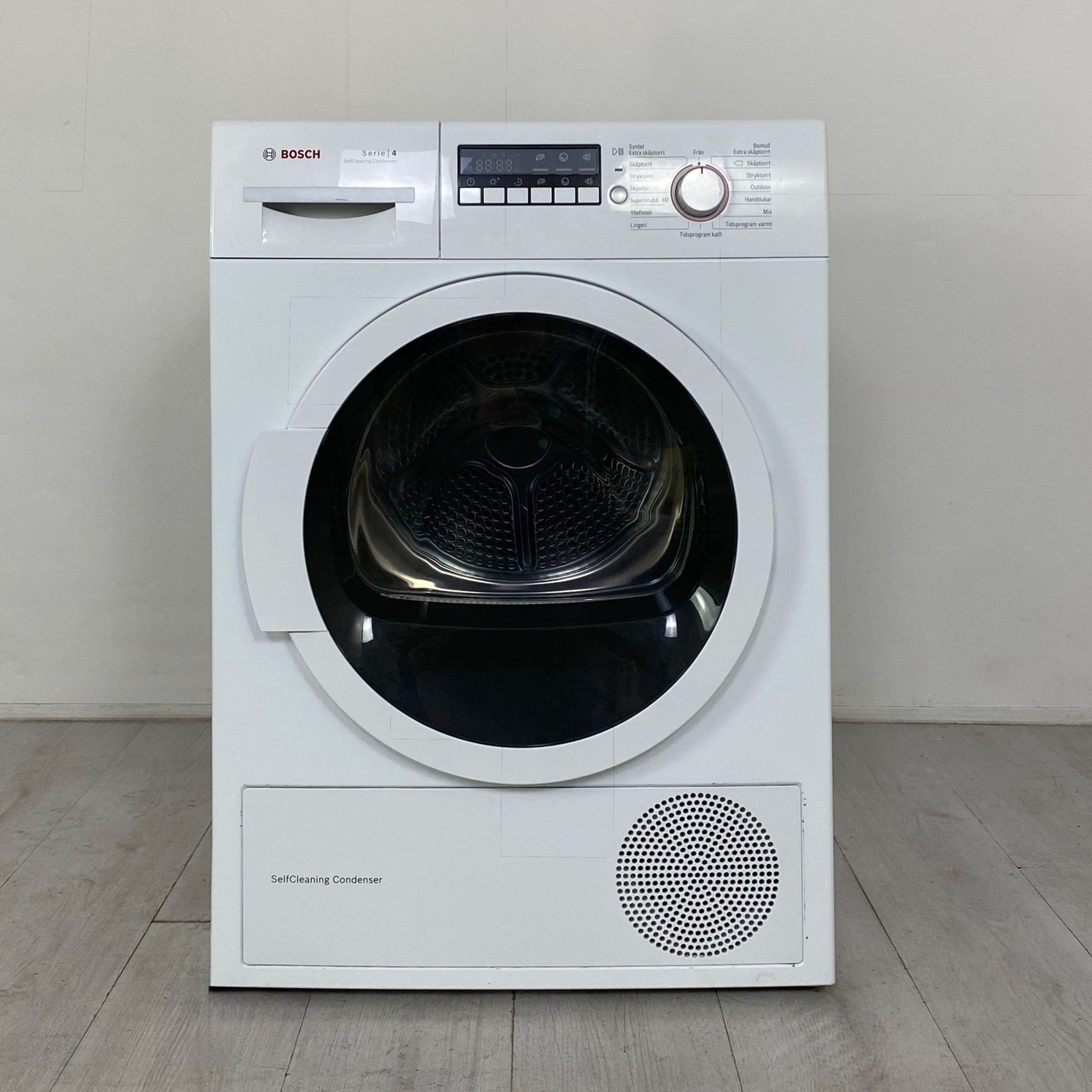 Funktioner: Barnlås, Filterindikator, Sensorstyrning, Kalluftningsprogram, Senarelagd start, Skrynkelskydd, Display, Luddfilter