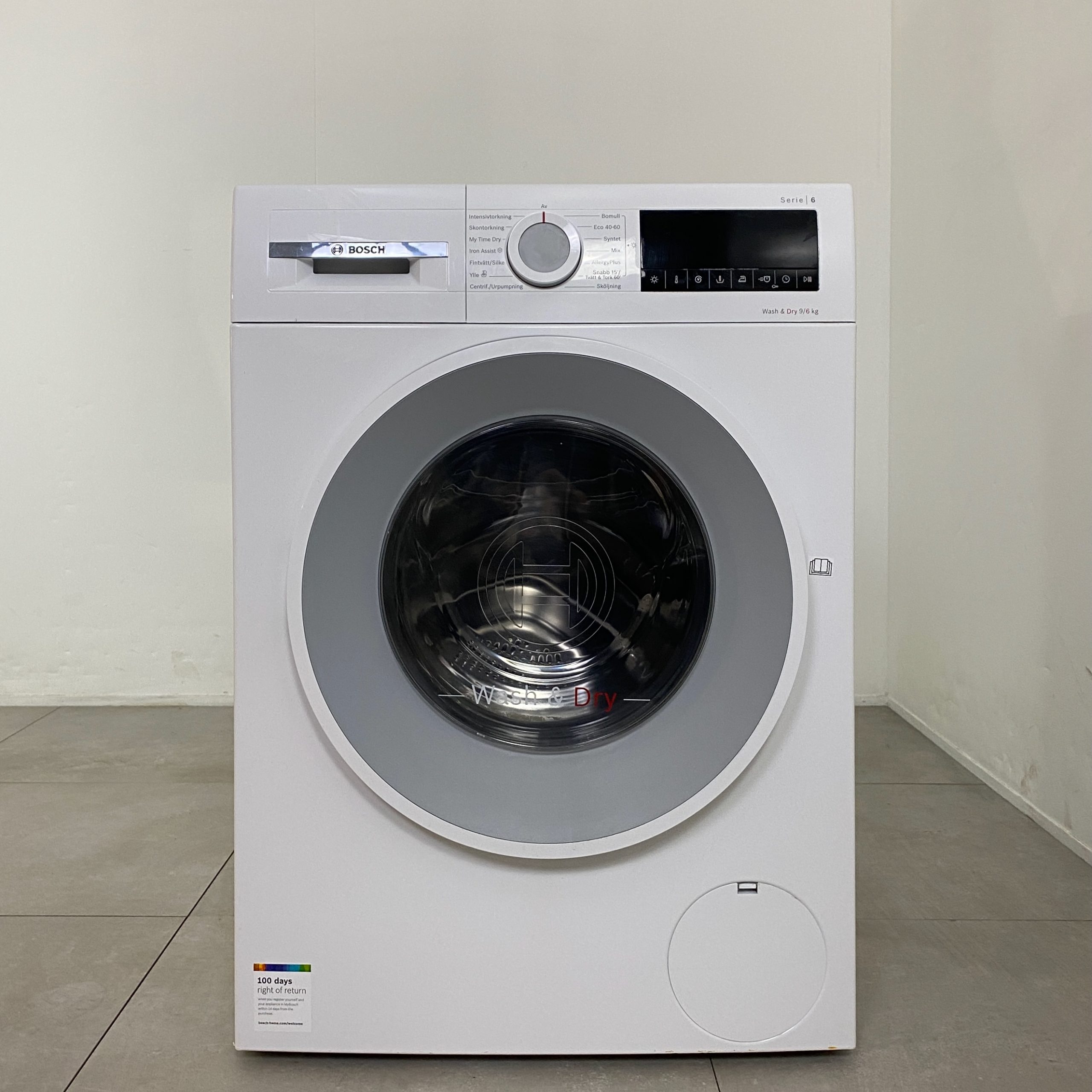 Bosch WNA144L9SN är en smart kombinerad tvätt/tork som är oerhört praktisk för dig som har begränsat med utrymme i badrummet. Maskinen har en tvättkapacitet på 9 kg och centrifugerar i upp till 1400 varv/min. Denna kombimaskin i Bosch Serie 6 har en kapacitet på 6 kg där den går hela vägen från smutsiga plagg, till ren och torr tvätt som är redo att vikas in i skåpet igen. AutoDry-sensorerna känner av tvättens fuktighetsgrad och anpassar torkningen därefter, detta resulterar i torrtvätt och minimalt med energiförbrukning.