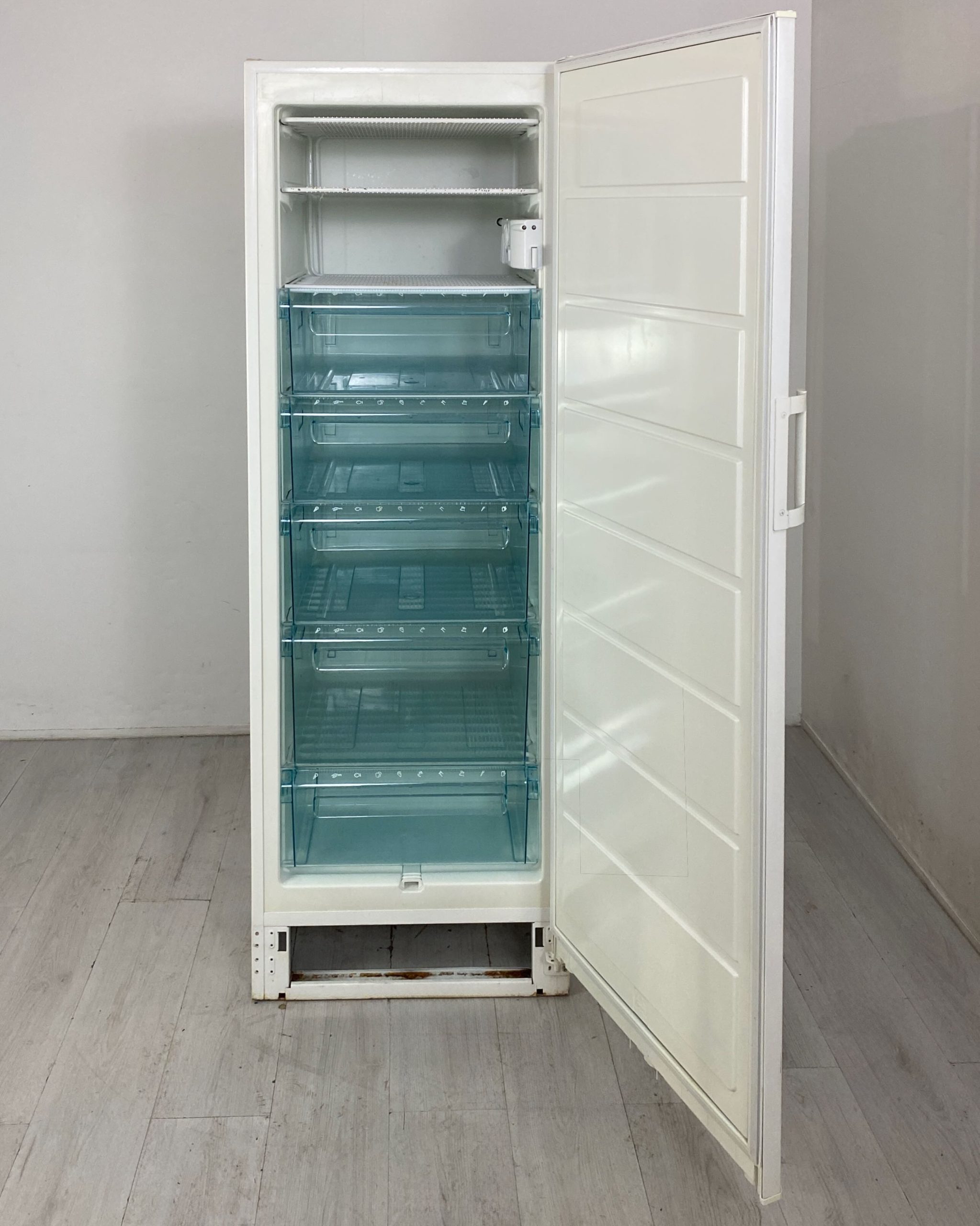 Denna rymliga frys på 267 liter är i begagnat skick och passar utmärkt som extra förvaringsutrymme i hemmet, fritidshuset eller förrådet. Med sina mått på 595 mm i bredd, 1750 mm i höjd och 600 mm i djup erbjuder den gott om plats utan att ta upp onödig yta. Frysen har energiklass A med en årsförbrukning på 306 kWh och en märkeffekt på 100 W. Den klarar av att frysa in upp till 24 kilo livsmedel per dygn, vilket gör den både praktisk och pålitlig för vardagens behov. Ett prisvärt och funktionellt val för dig som behöver extra fryskapacitet.