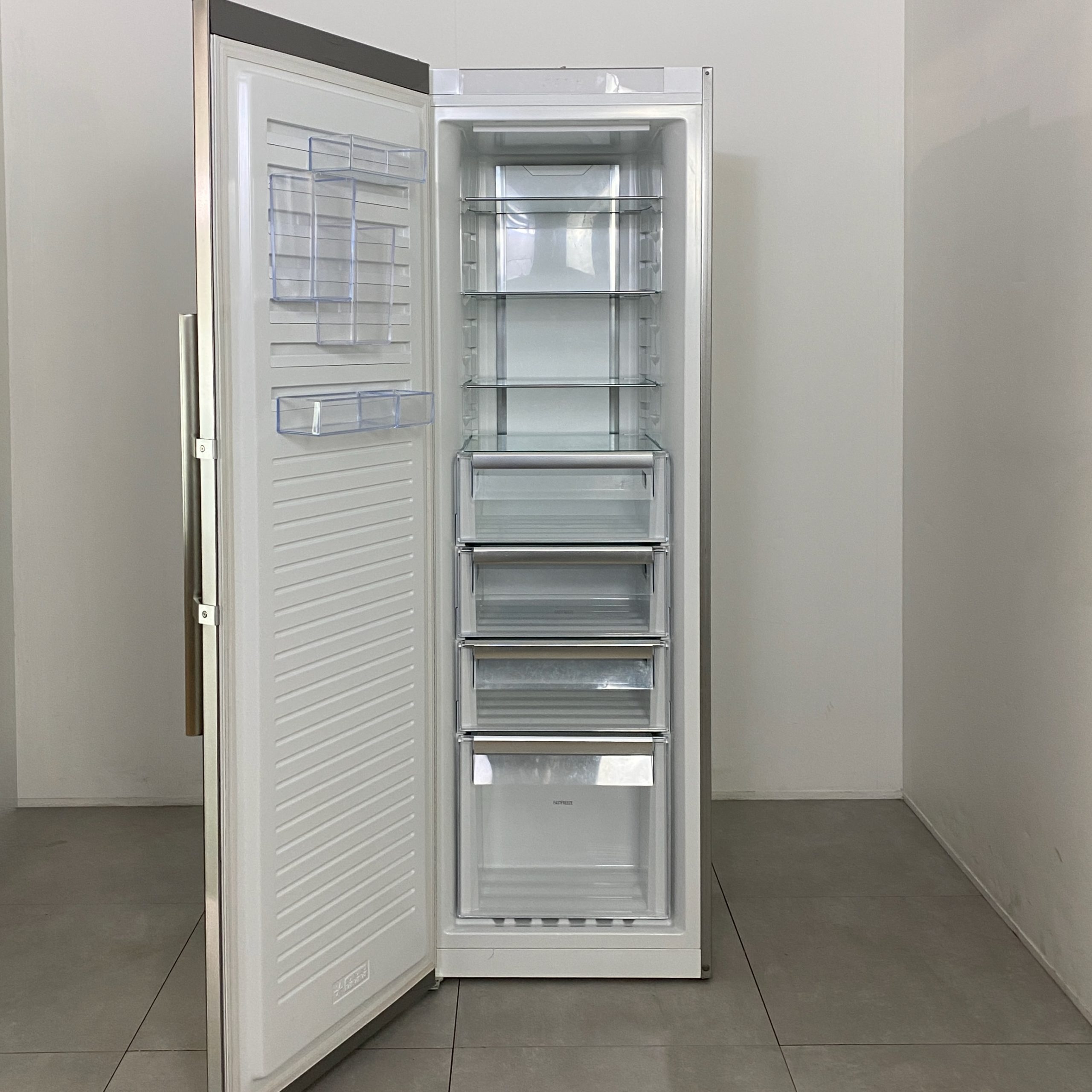 Frysen är utrustad med NoFrost-teknik och automatisk avfrostning, vilket eliminerar behovet av manuell avfrostning. Funktioner som snabbinfrysning och multi-luftflödessystem säkerställer jämn temperatur och effektiv infrysning av matvaror.