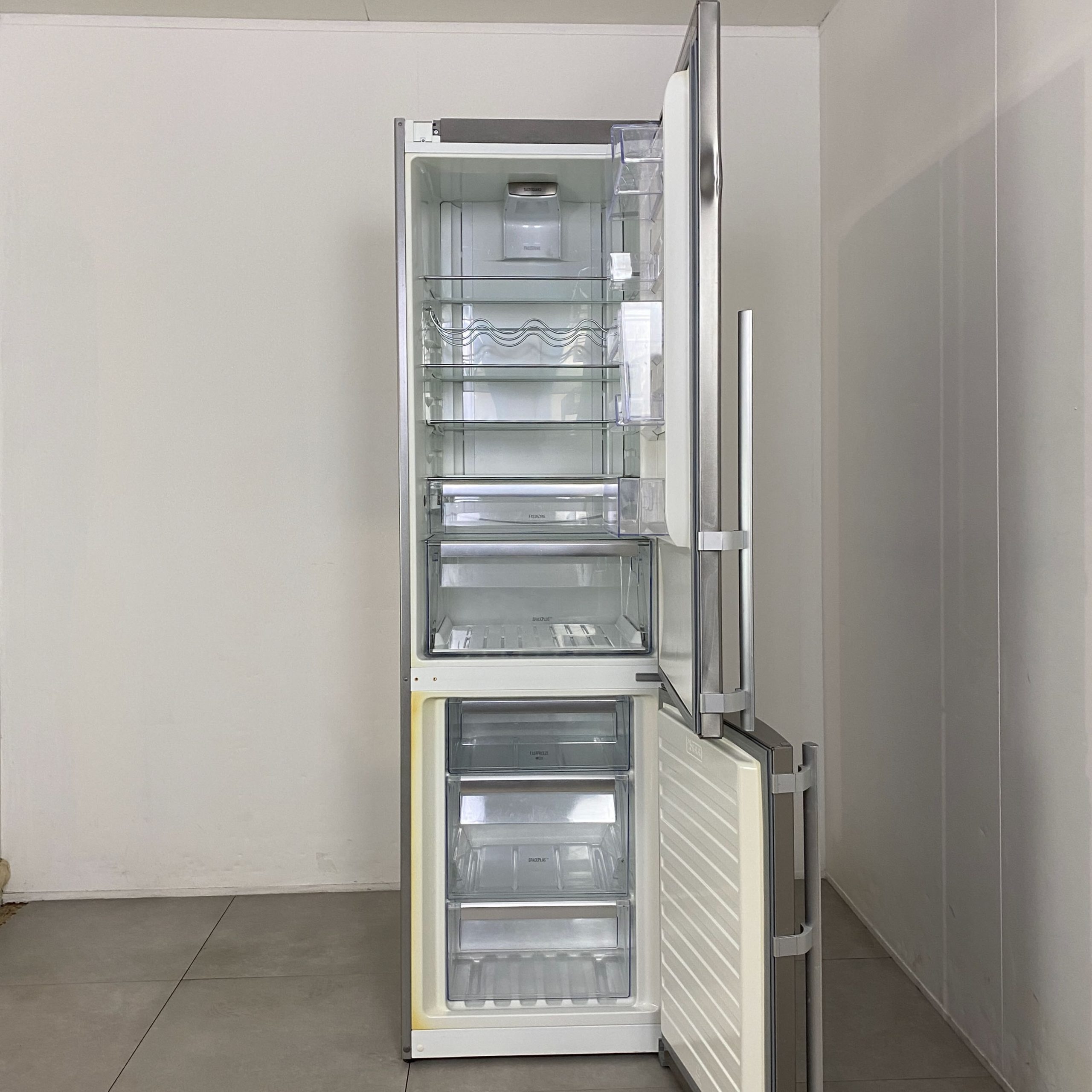 Funktioner: Dörrlarm, Glashyllor, Snabbkylning, Dynamisk kylning (fläkt), Snabbfrysning, Anti-fingeravtryck ytfinish, Flaskställ, LED-belysning, Frostfritt kylskåp, Frostfri frys
