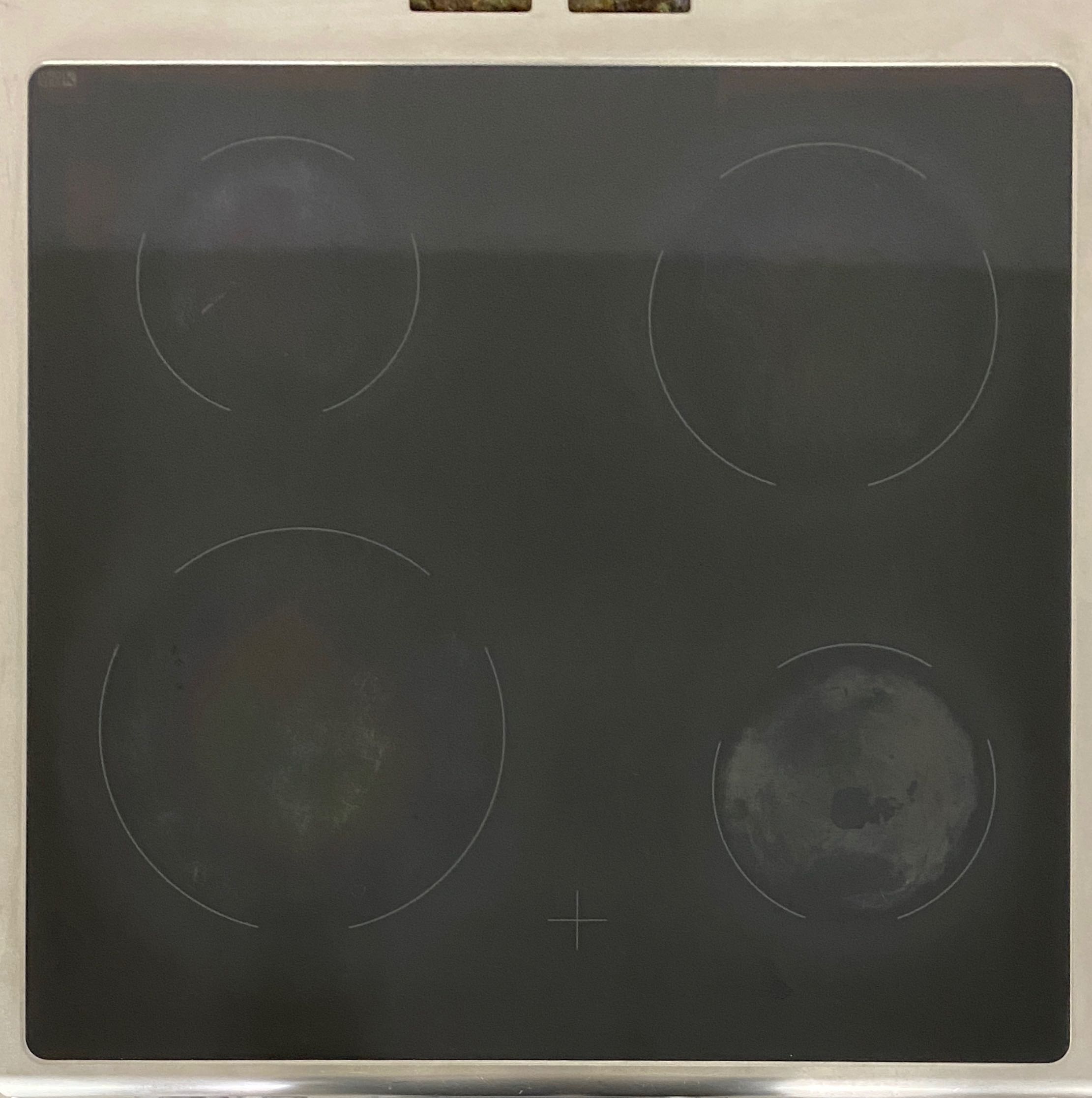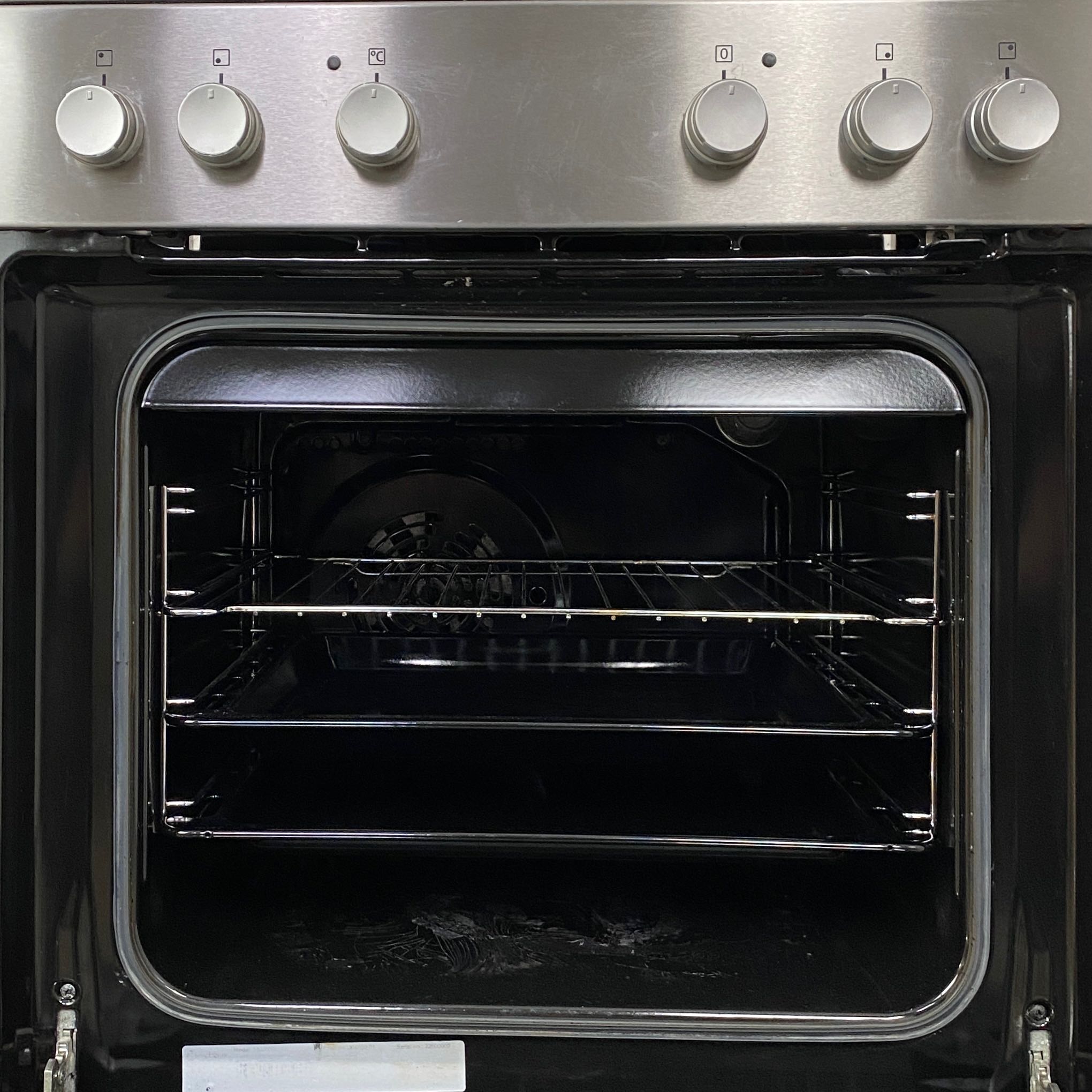 Denna produkt är begagnad och säljs i ett begagnat skick. notera: slitage på hällen och mindre repor på ugnsluckan.