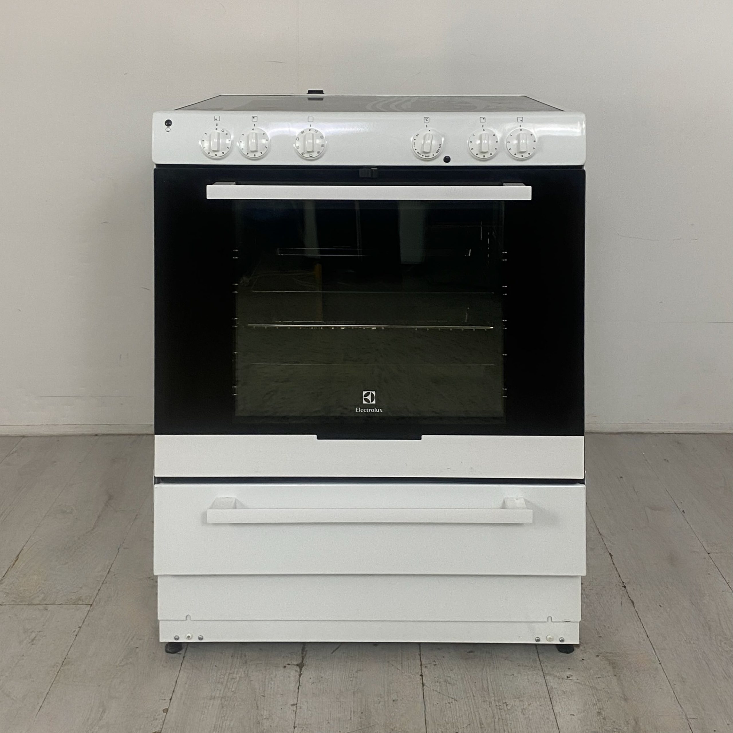 Electrolux EKC7051BOW är en spis med stor varmluftsugn och en keramisk glashäll. Spisens häll är en s k HighLight-häll som har kortare tändtid, lägre energiförbrukning och kortare uppkokningstid än traditionella keramiska spishällar. De fyra kokzonerna har restvärmevisning så att du ser vilka zoner som fortfarande är varma. Använd restvärmen för varmhållning. Kokzonerna ställs in steglöst via vred.