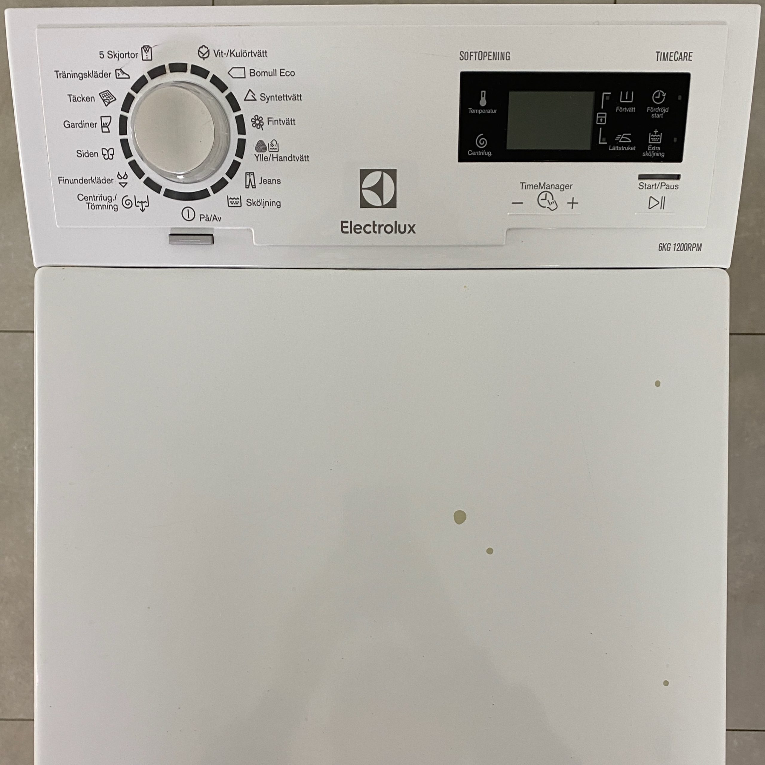 Electrolux EWT1266AOW. Laddning: Toppmatad. Nominell kapacitet: 6 kg, Centrifugering klass: B, Ljudnivå (spinn): 76 dB. Tvättklass: A. Ljudnivå (tvätt): 57 dB, Maximal centrifugeringshastighet: 1200 RPM. Årlig energiförbrukning tvätt: 150 kWh, Årlig vattenförbrukning tvätt: 8990 l. Produktens färg: Vit. Bredd: 400 mm, Djup: 600 mm, Höjd: 890 mm