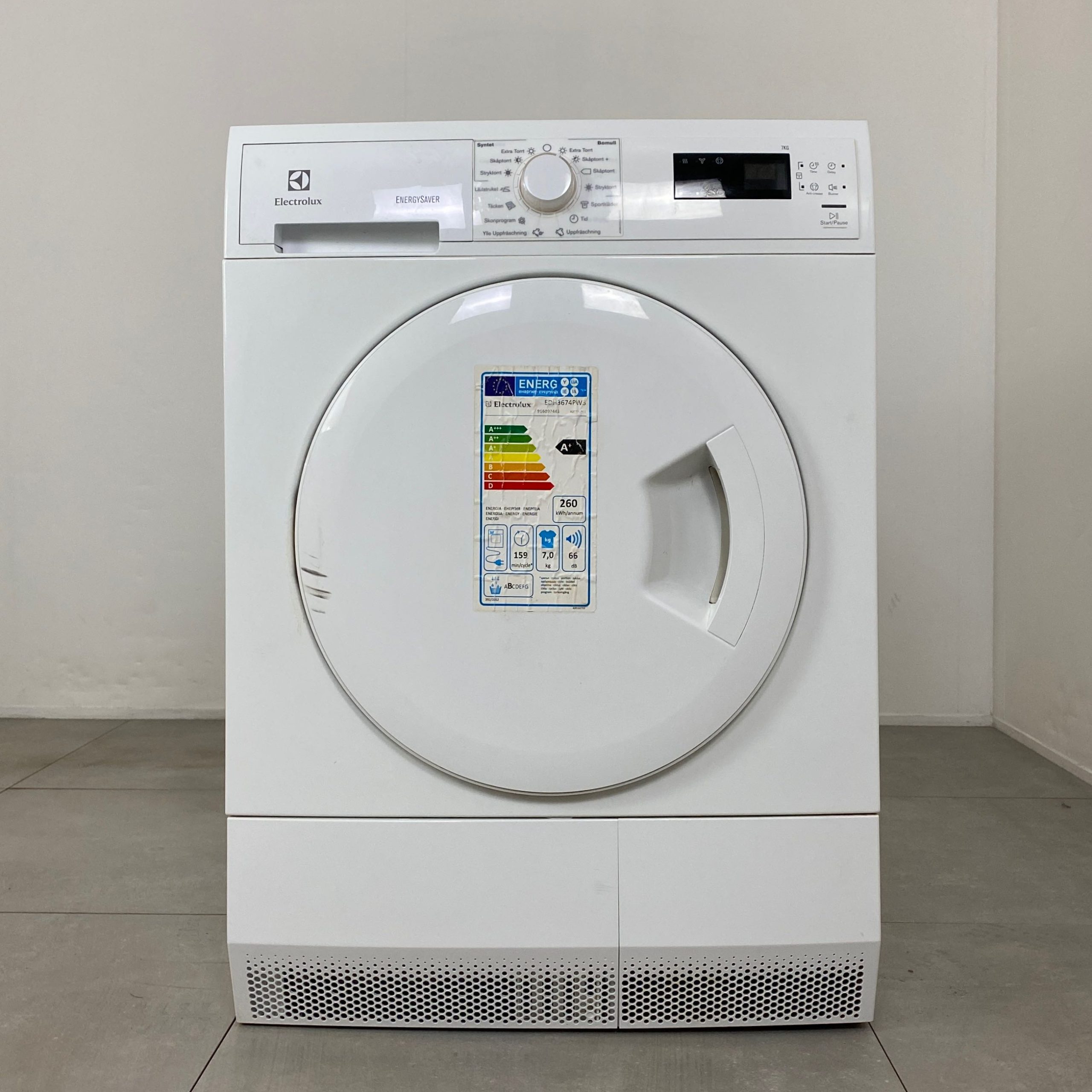 Viktad årlig energiförbrukning tork (kWh/år)- 260 kWh/år
