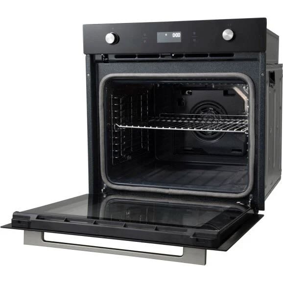 Elvita CUI4724S är en inbyggnadsugn med varmluft och en volym på hela 70 liter. Pyrolysfunktion gör den lätt att göra ren. Utvändigt präglas den av sin minimalistiskt eleganta form som passar utmärkt i det moderna köket. Den har en tydlig display och två vred där du gör dina inställningar.