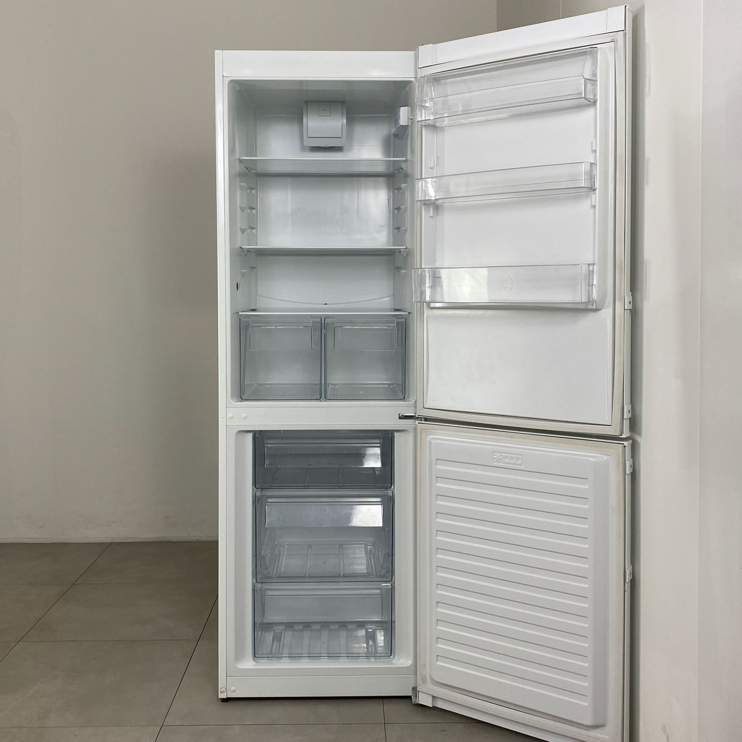 Detta energieffektiva kylskåp och frysskåp kombinerar generös förvaring med smarta funktioner. Med justerbara hyllor i härdat glas, inbyggd fläkt för jämn temperatur och No Frost-teknik slipper du manuell avfrostning. LED-belysning ger god överblick, medan snabb kyl- och frysfunktion gör vardagen smidigare. Den tysta driften och flexibla dörrmonteringen gör skåpet till ett praktiskt val för alla kök.