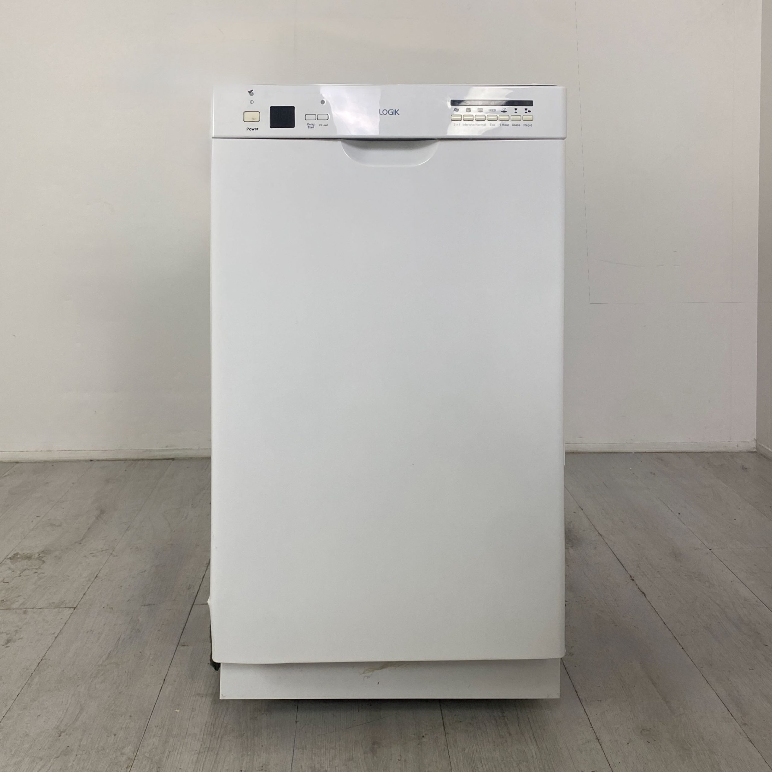 LOGIK 45 cm bred diskmaskin med kapacitet för 9 kuvert. Denna maskin är från år 2016 och säljs i ett begagnat skick.