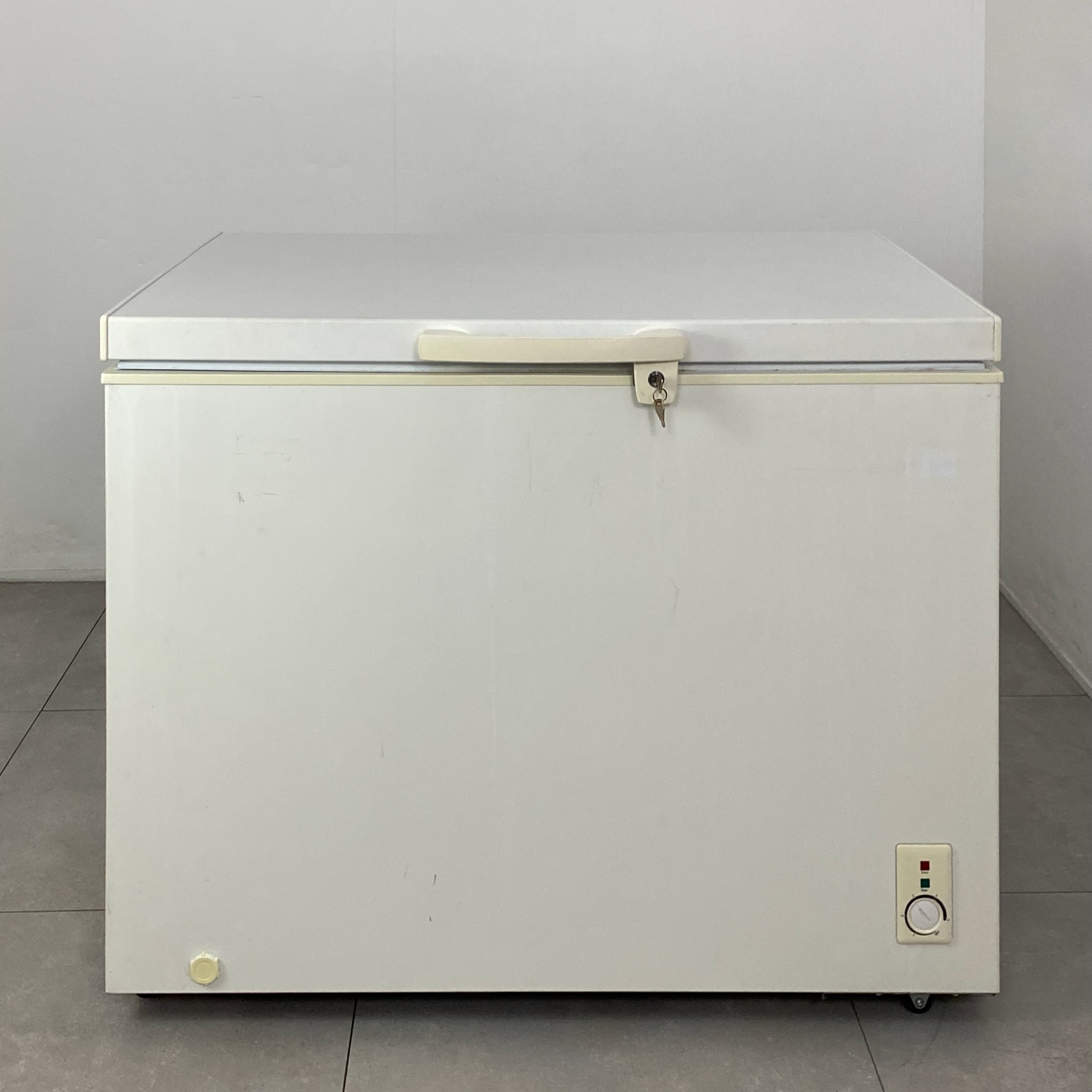 Frysboxen är utrustad med lås för extra säkerhet och har en robust konstruktion med måtten 84 × 105 × 78 cm. Med en ljudnivå på 50 dB arbetar den dessutom relativt tyst i bakgrunden, vilket gör den lämplig för både hem och förråd.