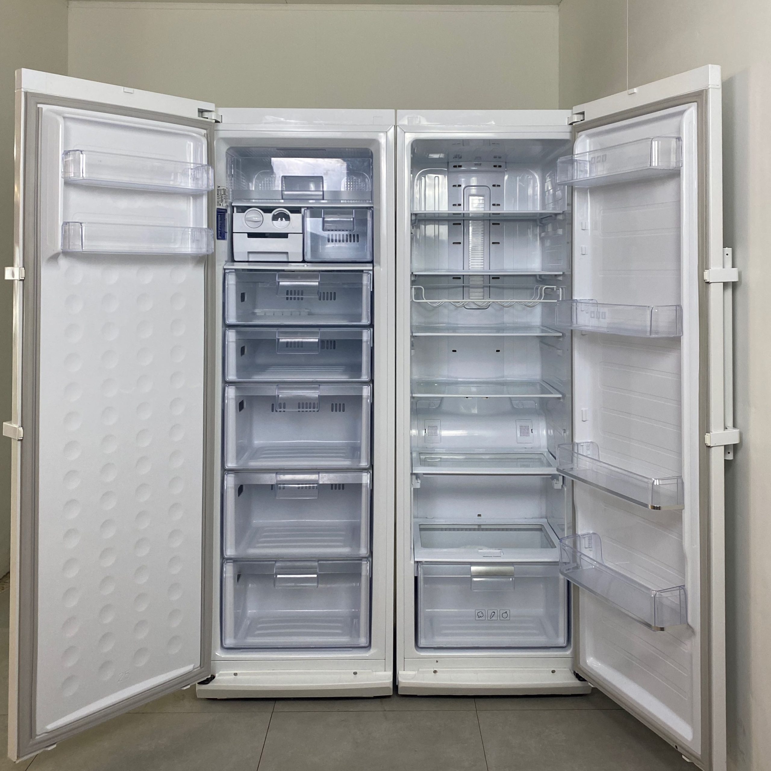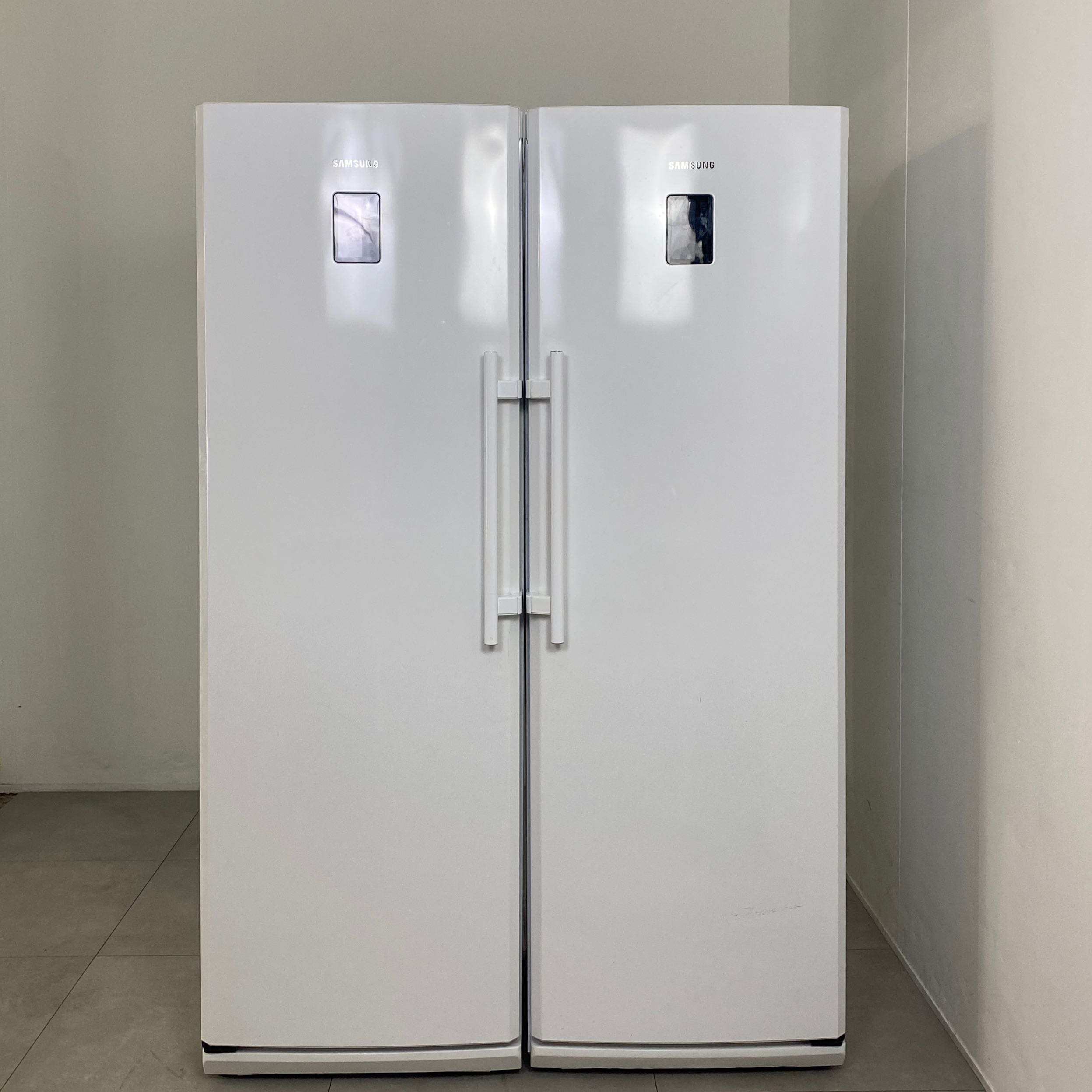 Ett kyl/frys-set från Samsung i vit design med rymlig kapacitet på 350/270 Liter.