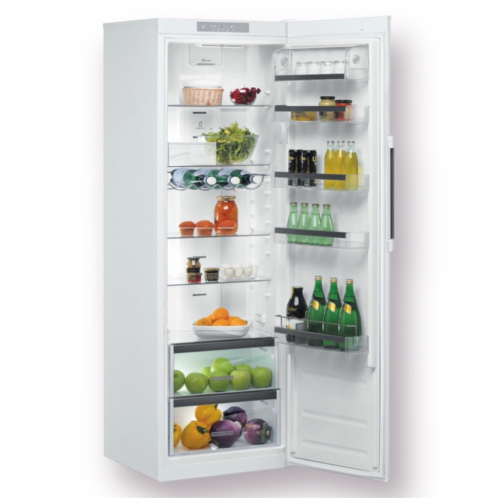 Whirlpools patenterade 6TH SENSE FreshControl säkerställer en idealisk kylförvaring med optimal temperatur och luftfuktighet. Resultatet är att din färska mat håller sig fräsch längre. Sensorer känner kontinuerligt av temperaturen och luftfuktigheten i hela kylskåpet. Om dörren stått öppen återställs temperaturen snabbt, och om det blir för torrt tillförs fukt. Detta ger dig första klassens kylförvaring som bevarar matens smak och utseende.
